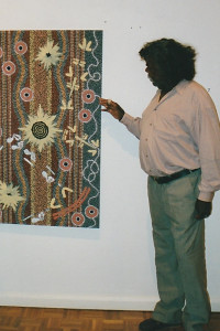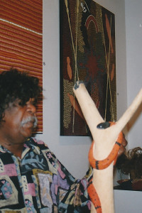 "That Dreaming been all the time. From our early days, before European people came up. That Dreaming carry on. Old people carry on this law, business, schooling for the young people. Grandfather and grandmother, uncle and auntie, mummy and father, all that, they been carry on this, teach 'em all the young boys and girls. They been using the dancing boards, spear, boomerang all painted. And they been using them on body different times.