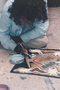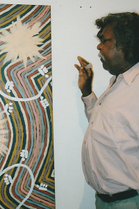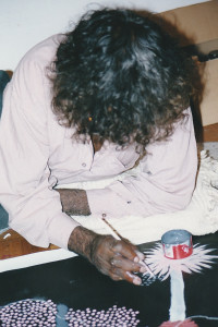 Clifford Possum was born in 1932 on Napperby Station. He worked extensively as a stockman on the cattle stations in and around his traditional country. During this time he developed an encyclopaedic knowledge of the Dreaming Trails that criss-cross the area to the north of the western McDonnell Ranges, which he uses in painting his Dreamings.