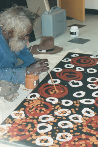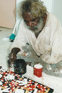 Johnny’s paintings have been exhibited extensively in Australia and overseas. These exhibitions include: 1981 National Gallery of Victoria, Melbourne; 1982 Georges Gallery, Melbourne; 1982 Brisbane Festival; 1982 London, England; 1988 Wagga Wagga City Art Gallery; 1989 ‘Mythscapes’, National Gallery of Victoria, Melbourne; 1989 Westpac Gallery, Melbourne; 1989 Australian National Gallery, Canberra; 1991 Lowe Art Museum, University of Miami, USA; 1993 Art Gallery of Western Australia, Perth; 1999 Flinders Art Museum Flinders University, Adelaide; 1999 ‘Tjinytjilpa’, Embassy of Australia, Washington, USA; 1999 Fine Arts Museums of San Francisco , USA; 2001 ‘Icons of Australian Aboriginal Art,’ Singapore.