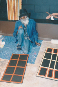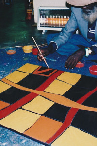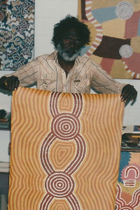 Though firmly based in traditional culture, Turkey Tolson was one of the first non-urban artists to use western mediums and techniques to create landscapes in the European Manner. By working outside of the traditional Aboriginal framework, Turkey was able to develop both methods of expression.
