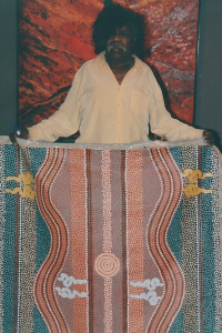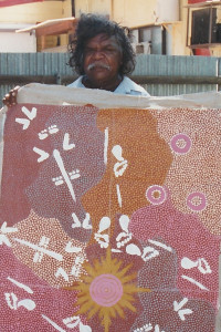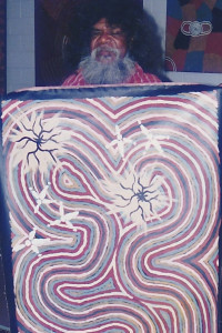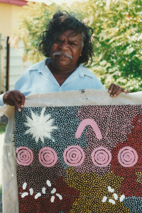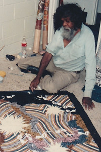 "That Dreaming been all the time. From our early days, before European people came up. That Dreaming carry on. Old people carry on this law, business, schooling for the young people. Grandfather and grandmother, uncle and auntie, mummy and father, all that, they been carry on this, teach 'em all the young boys and girls. They been using the dancing boards, spear, boomerang all painted. And they been using them on body different times.