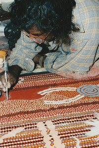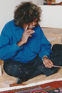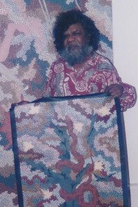 Clifford Possum was born in 1932 on Napperby Station. He worked extensively as a stockman on the cattle stations in and around his traditional country. During this time he developed an encyclopaedic knowledge of the Dreaming Trails that criss-cross the area to the north of the western McDonnell Ranges, which he uses in painting his Dreamings.