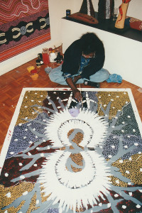 Clifford is one of the most renowned Aboriginal artists of his time. He was the chairman of the Papunya Tula Artists from the 1970's to the 1980's. His work is featured in all state galleries and also in many collections in Australia and overseas. His work has travelled extensively around the world, including, 1975-83 ’Peter Stuyvesant Cultural Foundation‘; 1980 Pacific Asia Museum, Los Angeles, USA; 1981 Art Gallery of New South Wales; 1983 XVII Sao Paolo Biennale, Sao Paolo; ‘Dreamings, The Art of Aboriginal Australia’ in New York, Chicago, Los Angeles and St Louis 1988, ’Clifford Possum Tjapaltjarri Paintings 1973-1986’, retrospective exhibition at the Institute of Contemporary Arts, London; 1990 ‘l’ete Australien a’ Montpellier’, Montpellier, France; 1990 Rebecca Hossack Gallery, London; 1991 Lowe Art Museum, University of Miami, USA; 1993 Art Gallery of Western Australia, Perth; ,1993 Gallery Gabrielle Pizzi, 1994 National Gallery of Victoria, Melbourne; 1999 Flinders Art Museum, Flinders University, Adelaide; 1999 ‘Tjinytjilpa’ Embassy of Australia, Washington, USA; 1999 ‘Indigenous Art of the Dreamtime’ held in the main foyer of the United Nations Building New York, USA. Jinta Desert Art Gallery Sydney, Aboriginal Art Galleries of Australia Melbourne and Aboriginal Desert Art Gallery Alice Springs. In 2004 a retrospective exhibition of the artist’s work travelled to all major state galleries. The exhibition marked the first retrospective of a Papunya Tula artist in an Australian public gallery and celebrated one of Australia’s greatest painters.