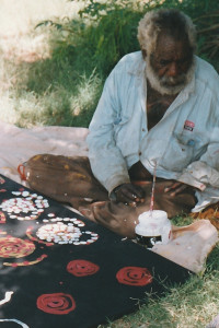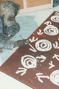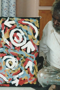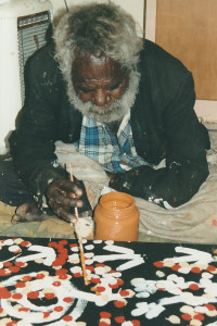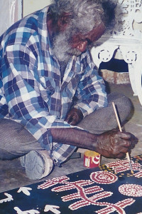 His final years were spent at Papunya with his wife Gladys Napanangka and his eight children. Johnny’s failing eyesight worsened considerably in the last stages of life, steadily reducing his artistic output. Johnny died on the 12th of February 2001, and will be sadly missed by all who knew him and admired his art.