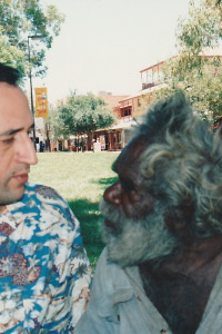 Johnny can recollect his first contact with Europeans, remembering his fearful response when witnessing an aircraft fly over his home lands as a young boy. His people believed the airplane to be a ‘mamu’ or devil. At a later date, his people came into contact with camels for the first time and again hid in fright as they recognized the beasts as being evil.