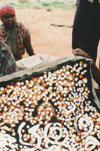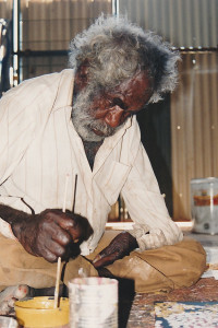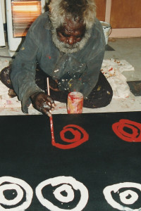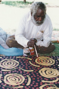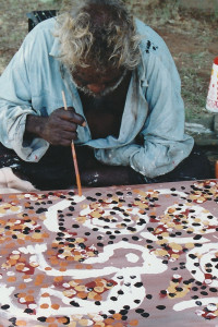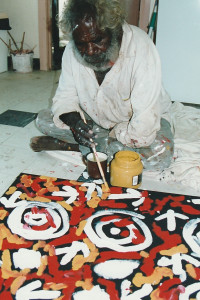 Johnny’s paintings have been exhibited extensively in Australia and overseas. These exhibitions include: 1981 National Gallery of Victoria, Melbourne; 1982 Georges Gallery, Melbourne; 1982 Brisbane Festival; 1982 London, England; 1988 Wagga Wagga City Art Gallery; 1989 ‘Mythscapes’, National Gallery of Victoria, Melbourne; 1989 Westpac Gallery, Melbourne; 1989 Australian National Gallery, Canberra; 1991 Lowe Art Museum, University of Miami, USA; 1993 Art Gallery of Western Australia, Perth; 1999 Flinders Art Museum Flinders University, Adelaide; 1999 ‘Tjinytjilpa’, Embassy of Australia, Washington, USA; 1999 Fine Arts Museums of San Francisco , USA; 2001 ‘Icons of Australian Aboriginal Art,’ Singapore.