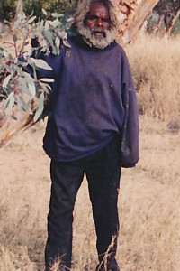 Johnny Warangkula Jupurrula was born in 1925 at Minjilpirri, an area north west of Illipili and south of Lake Mackay. The son of mixed parents, his mother being of Luritja/Warlpiri/Pintupi descent and his father Luritja/Warlpiri, Johnny was raised in a traditional manner, living a traditional life style in the desert and never attending European schools. Johnny is of the Luritja language group and was initiated into manhood during his family’s stay at a mission in Hermannsburg.