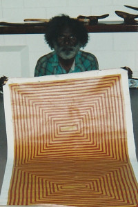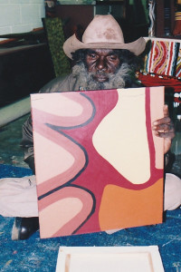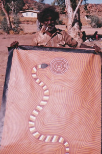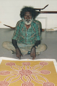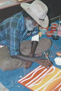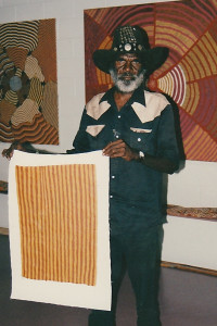 Though firmly based in traditional culture, Turkey Tolson was one of the first non-urban artists to use western mediums and techniques to create landscapes in the European Manner. By working outside of the traditional Aboriginal framework, Turkey was able to develop both methods of expression.
