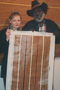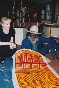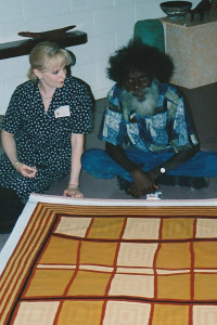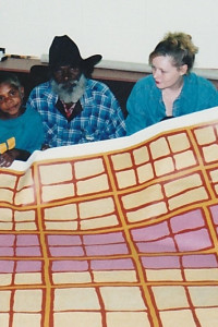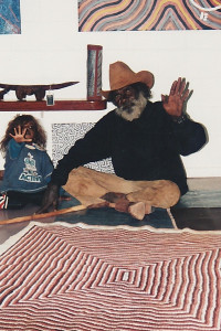 Turkey’s work has been exhibited extensively throughout Australia and overseas. Turkey was an artist in residence at Flinders University in 1979 and featured in the documentary ‘Market of Dreams‘. Others shows include 1977 Nigerian Festival, Lagos, Nigeria; 1981 ‘Mr Sandman Bring Me a Dream,‘ touring exhibition; 1982 Brisbane Festival; 1985 National Gallery of Victoria, Melbourne; 1985 Royal Melbourne Institute of Technology, Melbourne; 1985 Art Gallery of South Australia; 1988 Expo ’88, Brisbane; 1988 Asia Society Galleries, New York, USA; 1990 National Gallery of Modern Art , Rome; 1991 National Gallery of Australia, Canberra; 1991 Auckland City Art Gallery, New Zealand; 1993 Kunstsammlung Nordrhein-Westfalen, Dusseldorf, Germany; 1992\3 ‘New Tracks Old Land: An Exhibition of Contemporary Prints from Aboriginal Australia’ toured the U.S.A; 1993 Hayward Gallery, London; 1993 Louisiana Museum of Modern Art, Humlebaek, Denmark; 1995 Groninger Museum, The Netherlands; 1995 Susquchanna Art Museum, Harrisburg, USA; 1997 ’Dreampower’, Adelaide. In 1997 Turkey Tolson and Joseph Jurra Tkapaltjarri traveled to Paris to create a sandpainting as part of the exhibition 'Peintres Aborigenes d'Australie' at the Establissement Public du Parc de la Grande Halle de la Villette. 1998 ‘Sztuka Aborygenow,‘ (Art of the Aborigines), Warsaw, Poland; 1999 Flinders Art Museum Flinders University, Adelaide; 1999 Embassy of Australia, Washington, USA.; 2000 ‘Genesis and Genius’ exhibition, Art Gallery of New South Wales; 2001 ‘Icons of Australian Aboriginal Art,’ Singapore; 2001 Galerie Knud Grothe, Charlottenlund, Denmark; 2001/2 ‘Recounting the Essence of Life: Art from Australia’, Kunstforum HDZ, Germany. In 2001/2 after the artist’s death earlier in the year the Art Gallery of New South Wales held a solo exhibition ‘Ngurra Kutu’ (Going Home) as a tribute to the passing of this desert master. In 2003 Turkey was included in the show ‘Big Country: Works from the Flinders University Art Museum Collection’, Flinders University City Gallery, Adelaide. Recent international exhibitions include 2001-2004 ‘Mythology and Reality: Contemporary Aboriginal Desert Art from the Gabrielle Pizzi Collection’ which toured Palazzo Bricherasio Turin, Italy; AAM Utrecht, Netherlands; Jerusalem Centre for the Performing Arts, Israel; SH Ervin Gallery, Sydney; Heide Museum of Modern Art, Melbourne, Australia.